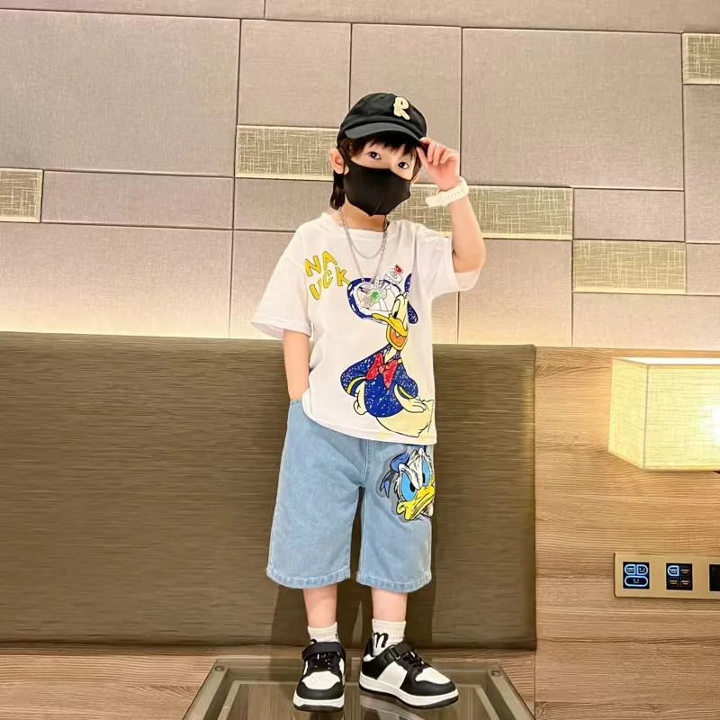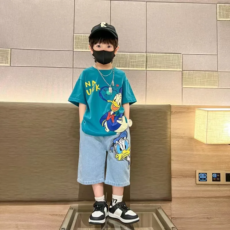 Buy 2024 Summer Baby Boys Cotton Clothing Sets Kids Cute Cartoon Donald Duck T-shirt + Jeans 2Pce Suits Childrens Tracksuits Clothes