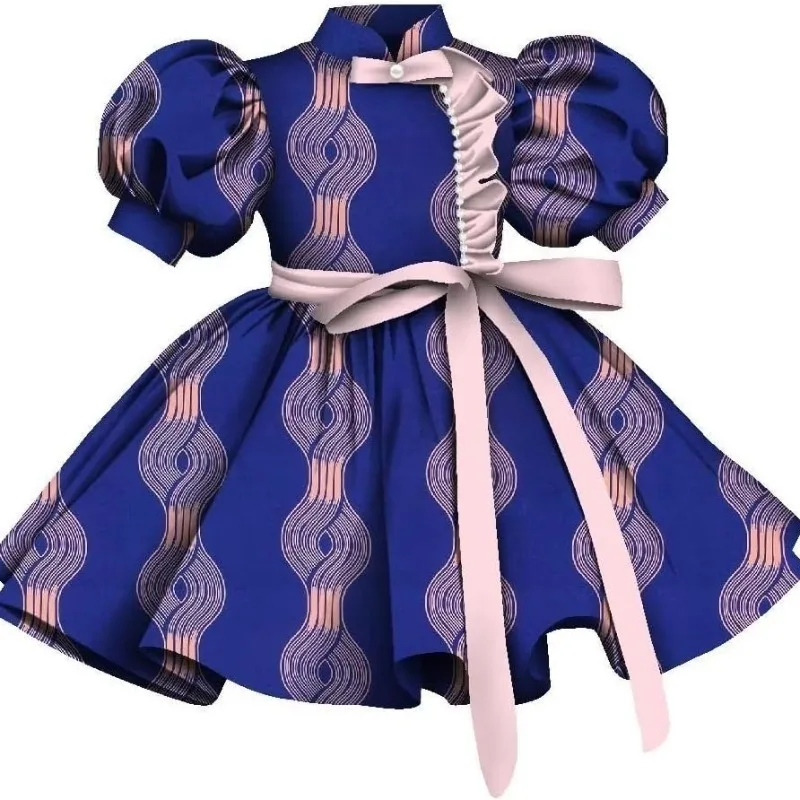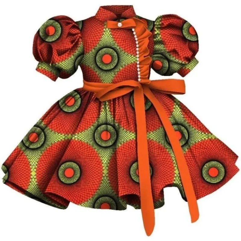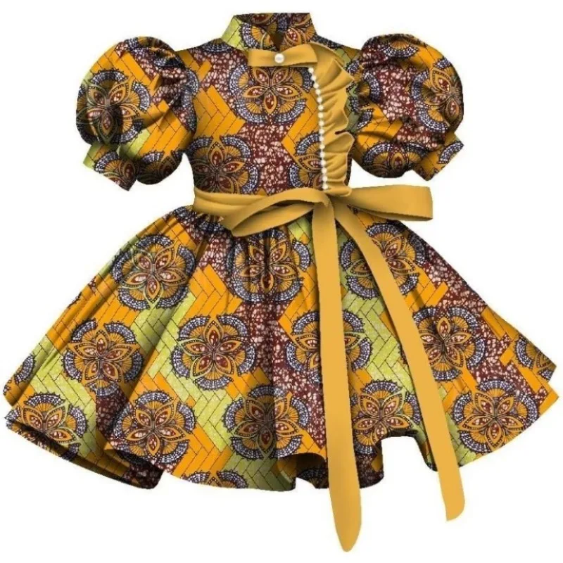 Buy African Print Girls Dress Short Sleeve High Waist A-line Midi Dress Wedding Children’s Birthday Party Evening Wyt733.