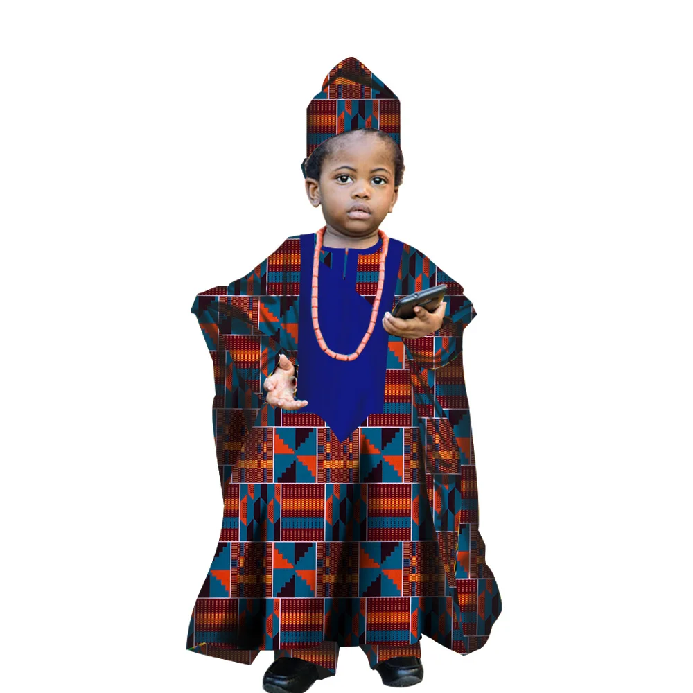 Fashion New African Tradition Clothes For Kids Boys Ankara Long Sleeve Tops Embroidery Dashiki Robe Shirt Pant Child Set Ramadan