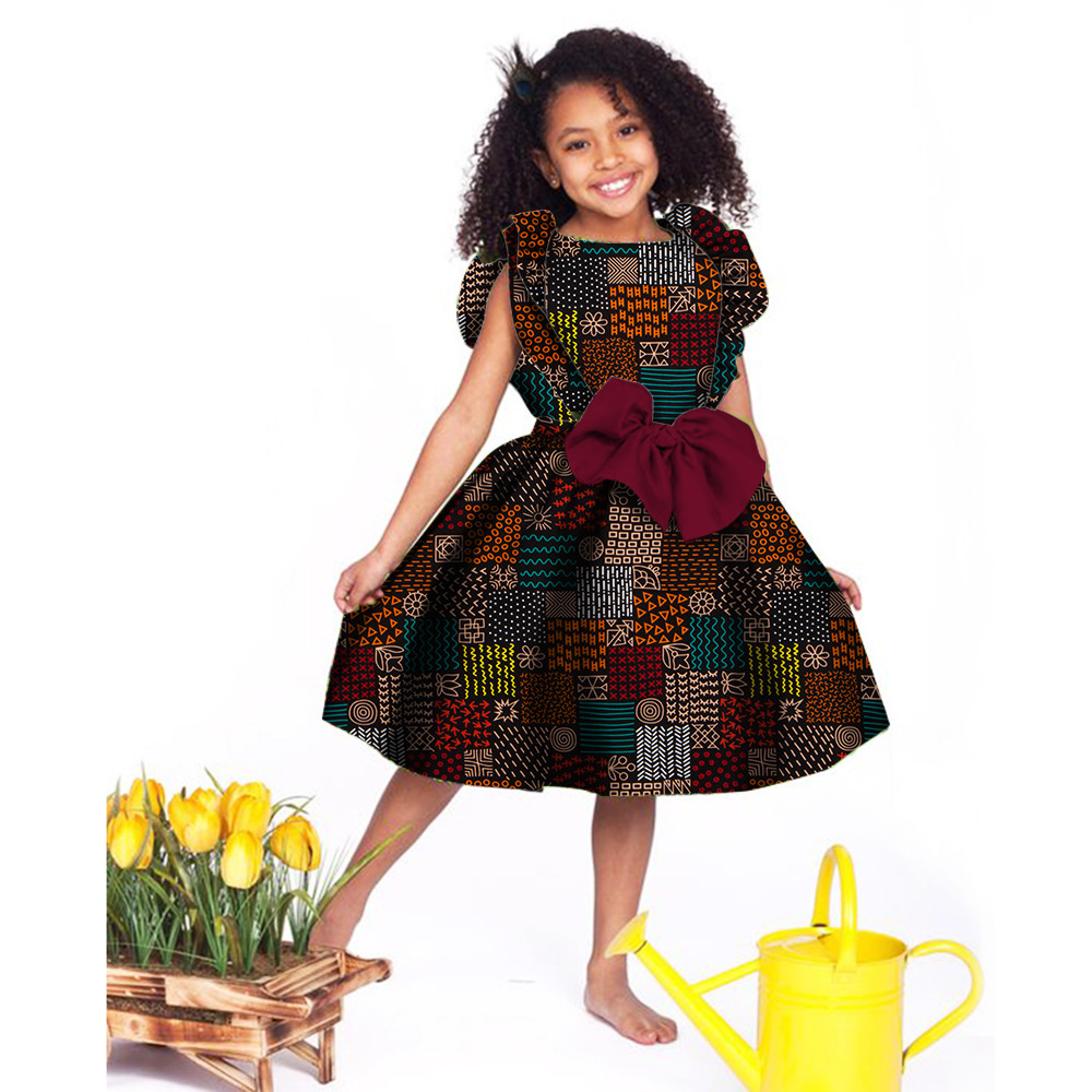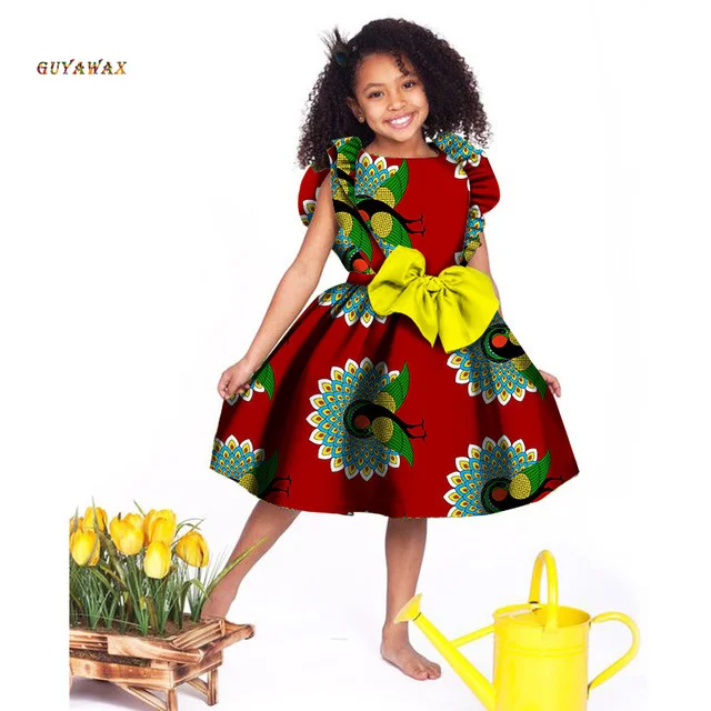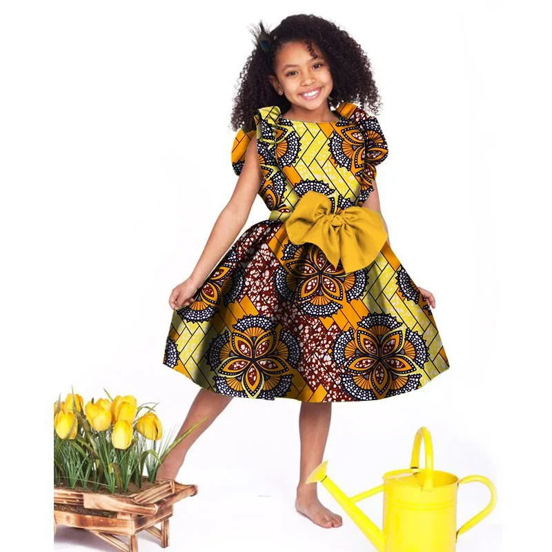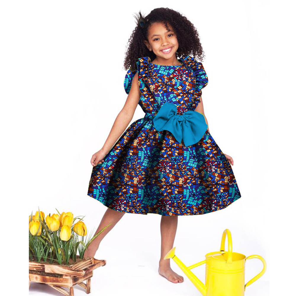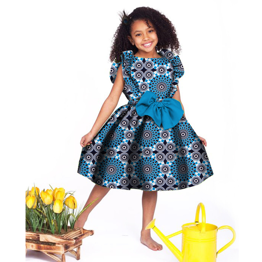 Lovely Girls Dresses Bazin Riche African Print Cute Ankara Dresses for Kids Children African Clothing Party Dress Xmas& New Year