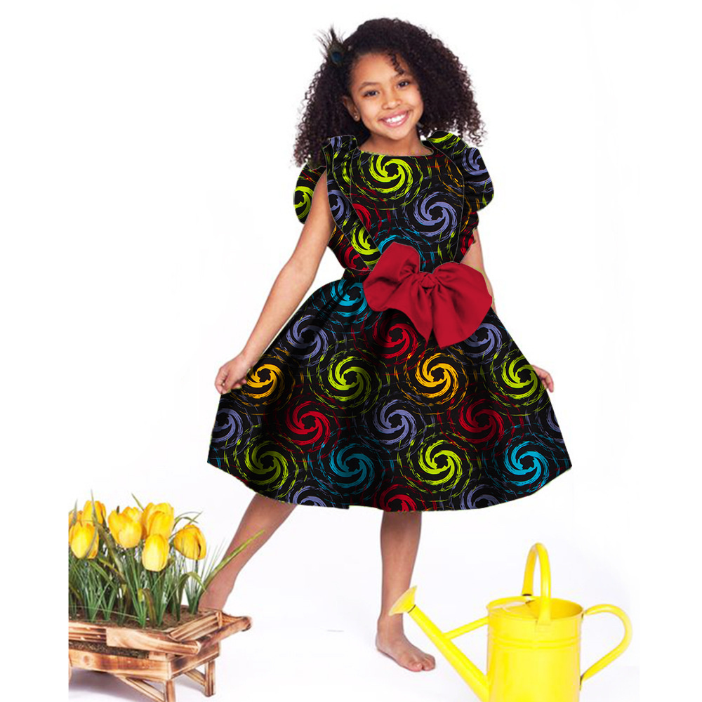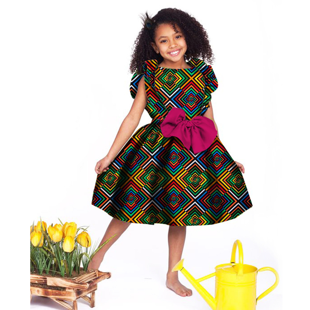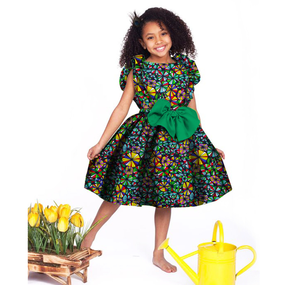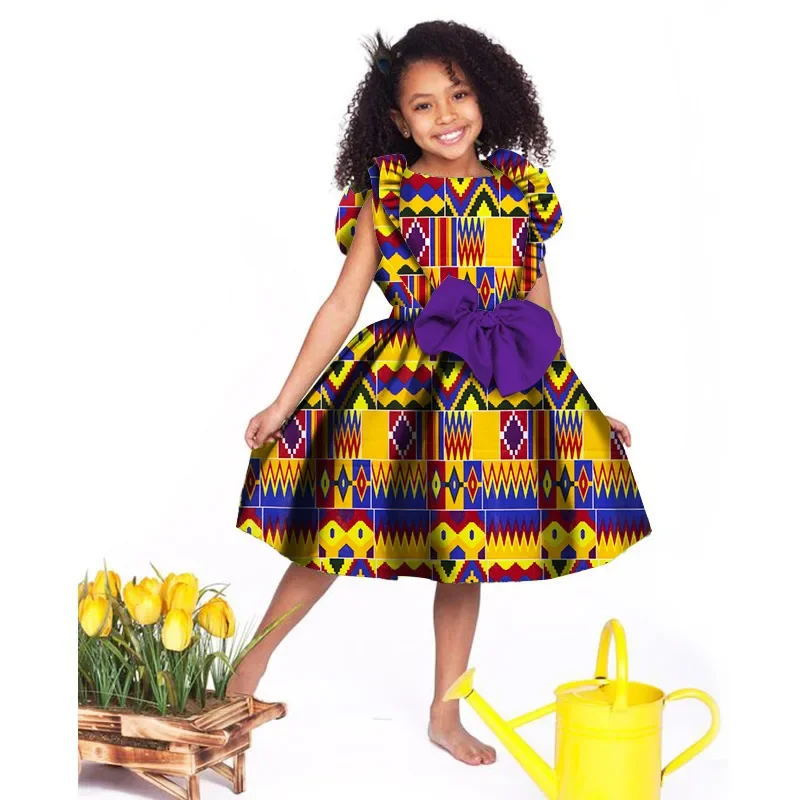 Lovely Girls Dresses Bazin Riche African Print Cute Ankara Dresses for Kids Children African Clothing Party Dress Xmas& New Year