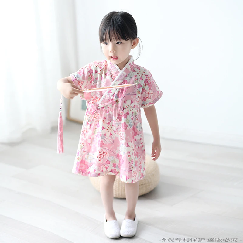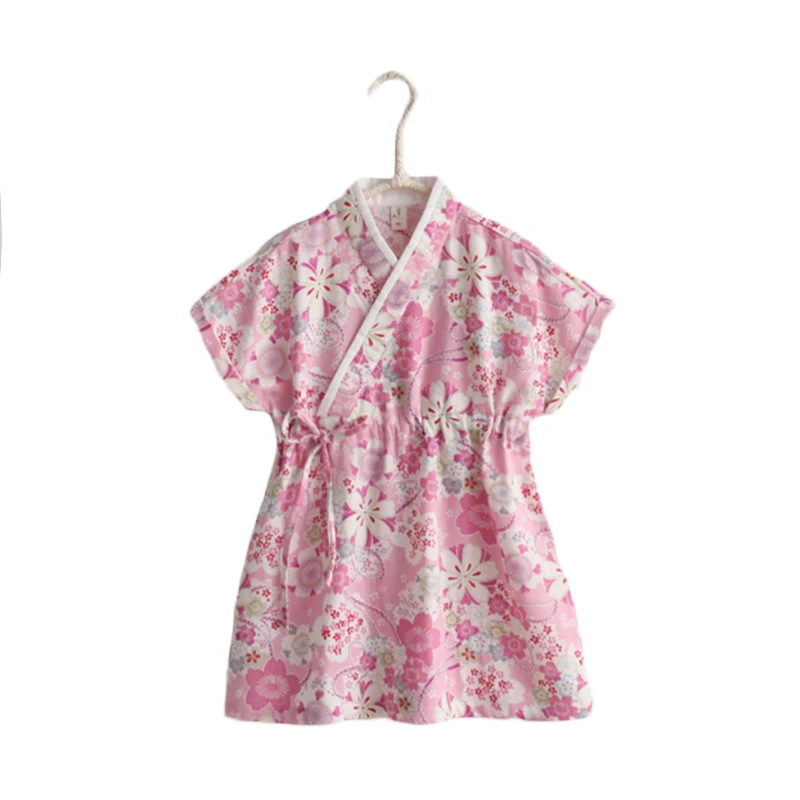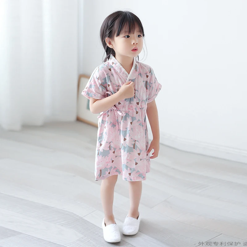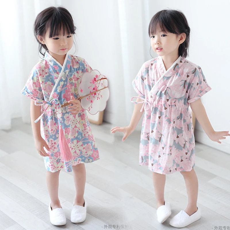 Buy Girls’ Pajamas Children’s Simple Sleepwear Suits Little Girls Japanese-Style Cotton Kimono Children’S Baby Thin Nightdress