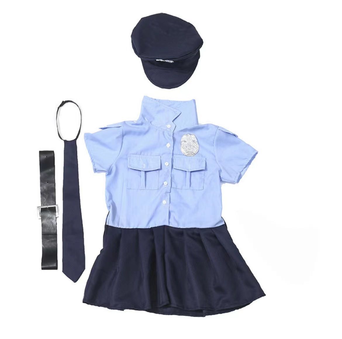 1.1 cop dress; 1 hat; 1 belt; 1 tie;